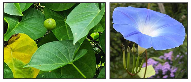 OTHER IMAGE SOURCE: Beach moonflower (Ipomoea violacea) leaves / © Dinesh Valke / CC BY-SA 4.0 International / Click on image or link to go to source page / iNaturalist