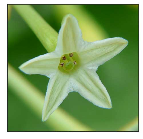 Flowers: Tubular greenish white flowers in an inflorescence, 5-petaled, 5 stamens present. (Flora & Fauna Web)