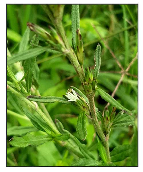 Botany • An erect herb up to 120 cm tall, usually branched and with a strong taproot, stems slightly hairy to glabrous. Leaves in a radical rosette and cauline, oblong-obovate to oblong-lanceolate, lower ones 5-25 cm × 1-7 cm, upper ones smaller. Heads clustered in the axil of small cauline leaves, combined into a long, lax terminal spike, involucral bracts 2-seriate, the outer ones shorter than inner ones. Flowers with corolla about 7 mm long, white. Fruit 6-7 mm long with pappus bristles unequal, the 2 largest sigmoid near the apex. (PROSEA)