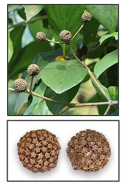 • Mitragyna parvifolia is a large tree growing 40 to 50 feet in height. Stem is erect and branching. Leaves are dark green, simple, opposite, smooth, rounded and decussate. Petioles are 1 to 4 centimeters long. Flowers are in terminal heads, fragrant, creamy-white or yellow, in ball-shaped clusters; peduncle supported by a pair of bract like oblong leaves. Fruits are capsules arranged in globose heads, 2 to 3 millimeters lone, ribbed. Seeds are many, small, 10-ribbed.