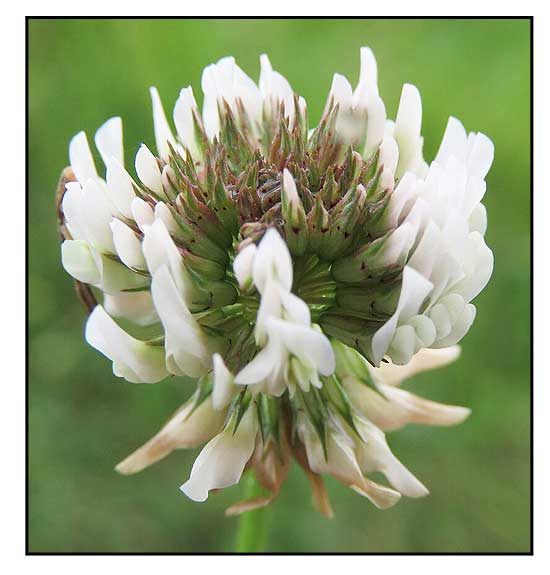 • Perennial herbs, stoloniferous, glabrous to glabrescent. Stems 10-30 cm, prostrate, rooting at nodes. Leaves long petiolate, palmately 3-foliolate; stipules ovate-lanceolate, membranous, with veins green or red, sheathing at base, apex subulate; petiolule 1-1.5 mm; leaflets obovate to ovate, 6-20(-40) × 8-16(-25) mm, lateral veins 13 pairs, prominent on both surfaces, base cuneate, apex emarginate to broadly rounded. Flowers 20-50(-80), in terminal, globose umbels, 1.5-4 cm; peduncle equal to or longer than petiole; involucre absent; bracts lanceolate-ovate, membranous; pedicels 2-5 mm, reflexed after anthesis. Calyx 3-5 mm, veins 6-10; teeth shorter than tube. Corolla white, rarely pink-tinged, 5-12 mm, fragrant; standard elliptic, ca. 2 × wings and keel. Ovary sessile; ovules 3 or 4. Legume linear-oblong. Seeds 2-4, ovoid to reniform. (Flora of China)