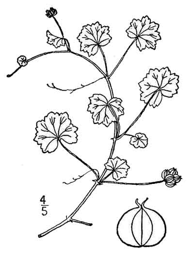 the stems rooting at the nodes. Leaves are orbicular or subreniform, thin, about 1 centimeter in