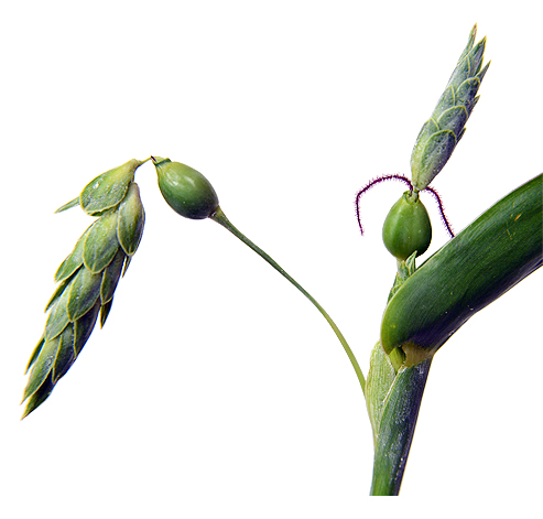 6 to 10 centimeters long, erect, and peduncled. Male spikelets are about 8 millimeters long. Fruits are capsules, enclosing the