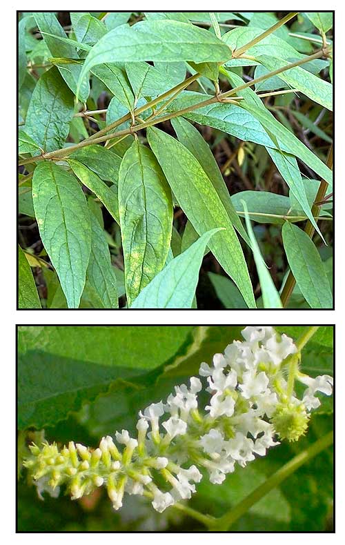 • A shrub or small tree up to 7 m tall; branches terete, densely appressed or woolly stellate-hairy when young. Leaves opposite, simple, narrowly lanceolate to oblong- or ovate-lanceolate, 3—30 cm x 0.5—7 cm, cuneate at base, long-acuminate at apex, margin remotely serrate-dentate to entire, densely hairy beneath, pinnately veined; petiole 2—15 mm long; stipules absent, but 2 opposite petioles connected by a stipular line. Inflorescence a terminal and/or axillary spike-like thyrse up to 25 cm long, composed of 1—3-flowered cymes in the axils of linear bracts, densely tomentose. Flowers bisexual, 4-merous, occasionally a few 5-merous, sessile or subsessile; calyx campanulate, 1.5—4.5 mm long, with triangular-oblong lobes; corolla 3—6 mm long, lobes distinctly shorter than tube, outside stellate-hairy, white, sometimes pale violet or greenish; stamens inserted on the corolla tube, filaments extremely short; ovary superior, 2-celled, style short, stigma club-shaped. Fruit an ovoid or oblong, flattened capsule 3—5 mm long, 2-valved, glabrous, brown, many-seeded. Seeds ellipsoid, small, with a short wing at both sides, endosperm fleshy. (30)