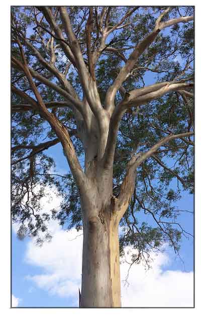 Botany• Eucalyptus tereticornis is a tree reaching a height of 15 meters or more in the Philippines. Trunk is usually straight and at least half the total height. Crown is large and somewhat open. Bark is grayish and peels off in thin layers. Leaves are leathery, lanceolate, somewhat sickle-shaped, and 10 to 25 centimeters i length. Peduncles are axillary or lateral and up to 1.5 centimeters long, each bearing 3 to 5 short-peduncled flowers. Flowers are white, about 1.5 centimeters in diameter, in small clusters. Fruit is obovoid or somewhat rounded, about 8 millimeters in diameter.