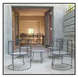 Danny is busy with the metalwork on the rest of the metal furniture.