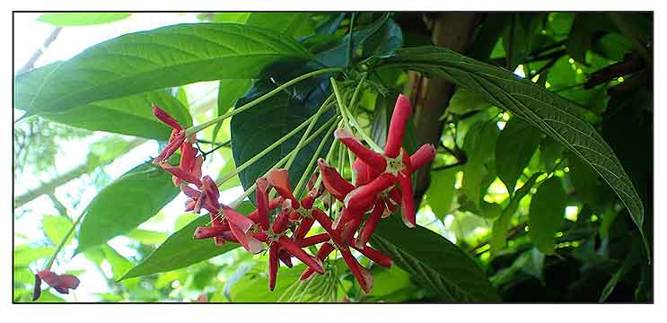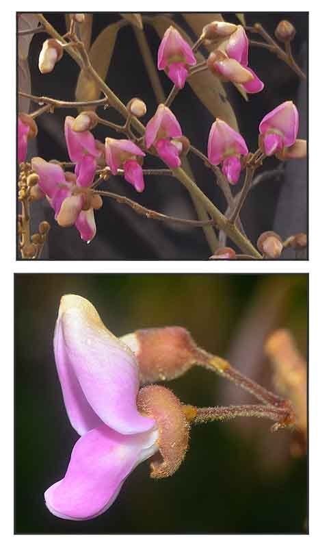 • Growth form: A large climber which can grow up to 5 to 12 m long.  Foliage: Leaves  are pinnate-compound and alternately arranged along the stems. New leaves are red but turn green when mature. Leaflets are obovate and coriaceous with an acute apex and are very pale green on the underside.   Flowers: Pink flowers occur in clusters known as pseudoracemes or pseudopanicales (up to 30 cm long). (Flora & Fauna Web) Distribution- Native to the Philippines.